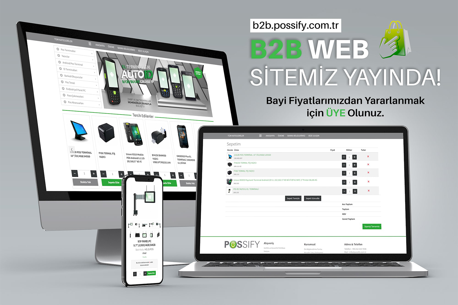 Possify her an yanınızda ve bir tık uzağınızdadır. Güvenilir alt yapısı, son teknolojik ilerlemeleri ile sizlere hizmet vermektedir. Her zaman kendini yenileyen ve daima çözüm odaklı olan Possify ailesi tüm ürünleri ile karşınızdadır. İnceleme sonrasında kararlarınız sonucu kampanyalardan yararlanabilir ve gerekli detayları öğrenmek için satış temsilciniz ile görüşebilirsiniz. Restoran otomasyon donanımı, market otomasyon donanımı gibi her an ihtiyaç duyduğunuz ürünlere kısa bir sürede ulaşabilir, inceleyebilir ve tedarik edebilirsiniz.